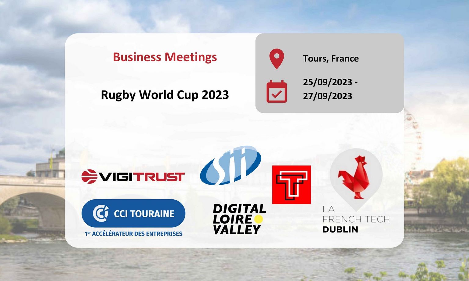 Alors que l'équipe irlandaise établit Tours comme son camp de base, nous sommes ravis d'annoncer que VigiTrust, en collaboration avec le Groupe SII, Digital Loire Valley, La French Tech Dublin et la Chambre de Commerce de Touraine, organise une série spéciale de business meetings du 25 au 27 septembre 2023. Ce sera une opportunité unique pour apprendre, réseauter et se connecter avec des experts de l'industrie dans une super atmosphère en marge de cette Coupe du Monde.