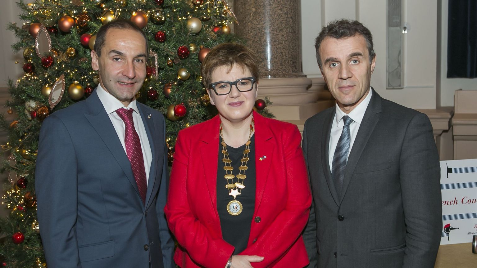 During the France Ireland Chamber of Commerce (FICC) Christmas Lunch at the Westin Hotel on Friday 13th December, Mathieu Gorge talked very positively about his two years as FICC President and passed the baton to Margot Slattery of Sodexo for the next two.