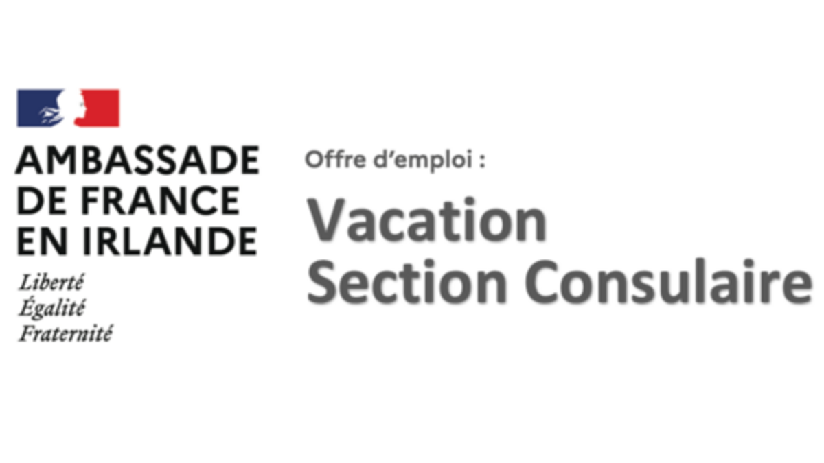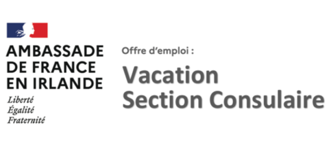 L’Ambassade de France à Dublin recrute un agent à temps plein pour un contrat de vacation d’une durée de trois mois (potentielle extension à 6 mois) sur le poste d’Agent administratif et consulaire à pourvoir à compter du 1er février 2022.
