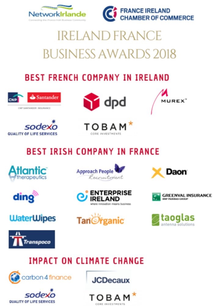 The winners will receive their Awards at a ceremony and Gala Dinner on 22nd November at the Intercontinental Hotel in Dublin. Contact Nicolas Destrez (info@franceireland.ie) to register.