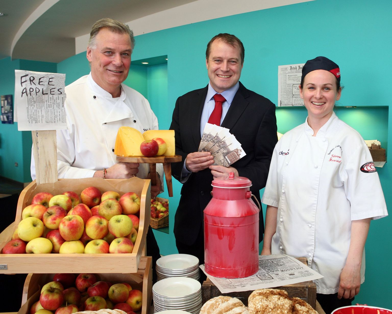 The An Post staff restaurant was packed as hundreds of customers happily enjoyed complimentary coddle, boxty cakes with handcrafted bread, heritage apples and Irish farmhouse cheeses served by chef and TV personality Derry Clarke and the Sodexo team.