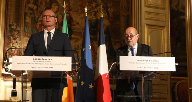 Talks between the Tánaiste and Minister for Foreign Affairs Simon Coveneyand French foreign minister Jean-Yves Le Drian in Paris on Wednesday focused on the urgency of a breakthrough in Brexit negotiations and contingency planning for trade between Ireland and France in the event of a no-deal Brexit.