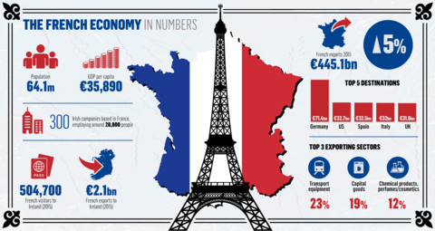 At present, there are 300 Irish companies operating in France, providing 20,000 jobs. That was an increase of 80 companies and 4,000 jobs over the course of 2015, underlining France as an increasingly popular destination for Irish firms.