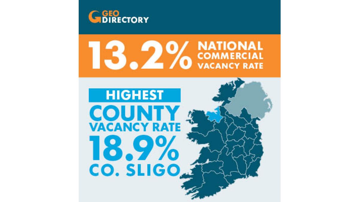 - Sligo recorded the highest commercial vacancy rate in the country at 18.9%, while Meath was the county with the lowest at 10.4%