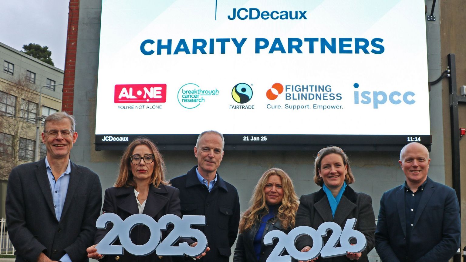JCDecaux have announced their charity partners for 2025 and 2026. From January 2025 they will be working exclusively with ALONE, Breakthrough Cancer Research, Fairtrade, Fighting Blindness and ISPCC Childline in the Republic of Ireland and with Aware, Concern Worldwide and Simon Community in Northern Ireland.