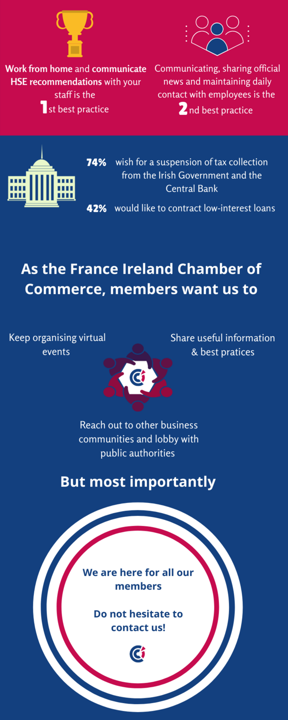 - Any relevant best practice and/or news that could be relevant to our members community: we welcome any uplifting news in these challenging times to keep us all positive and safe. We created a dedicated page on our website for the latest updates on COVID-19: https://www.franceireland.ie/news.html