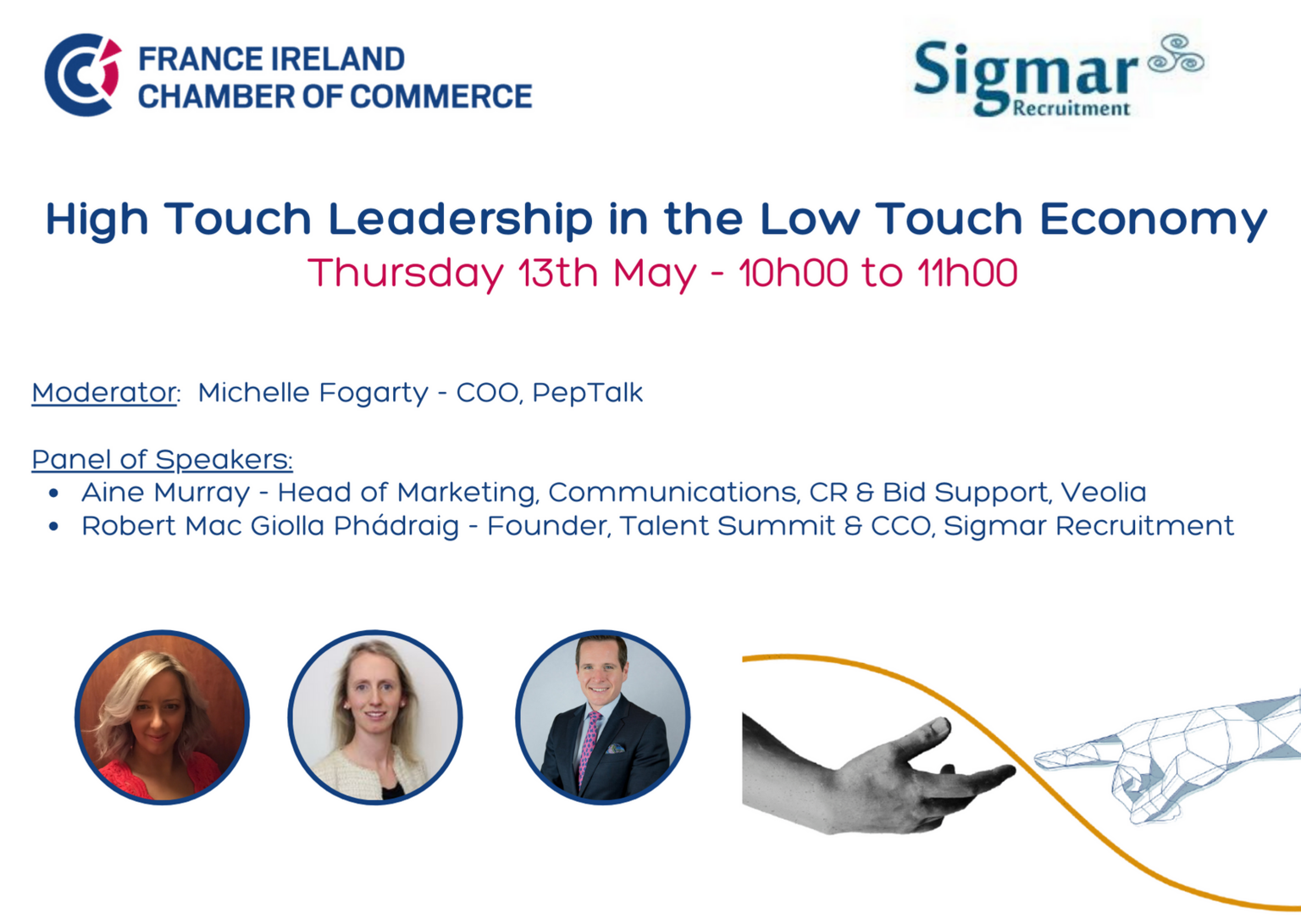 This session, moderated by Michelle Fogarty (COO, Peptalk), welcomed Robert Mac Giolla Phádraig (Founder Talent Summit and COO Sigmar Recruitment) and Aine Murray (Head of Marketing, Communications, CR & Bid Support, Veolia).