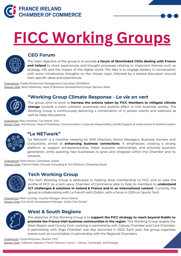 As we continue to strengthen our connections within the chamber, I encourage each of you to share your offers, expertise, and opportunities with fellow members via the Member2Member programme. If you wish to know more, contact us at info@franceireland.ie.