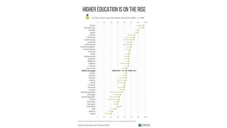 Ireland has the highest percentage of 25-34 yr olds with higher education in Europe and fourth highest percentage in the world.